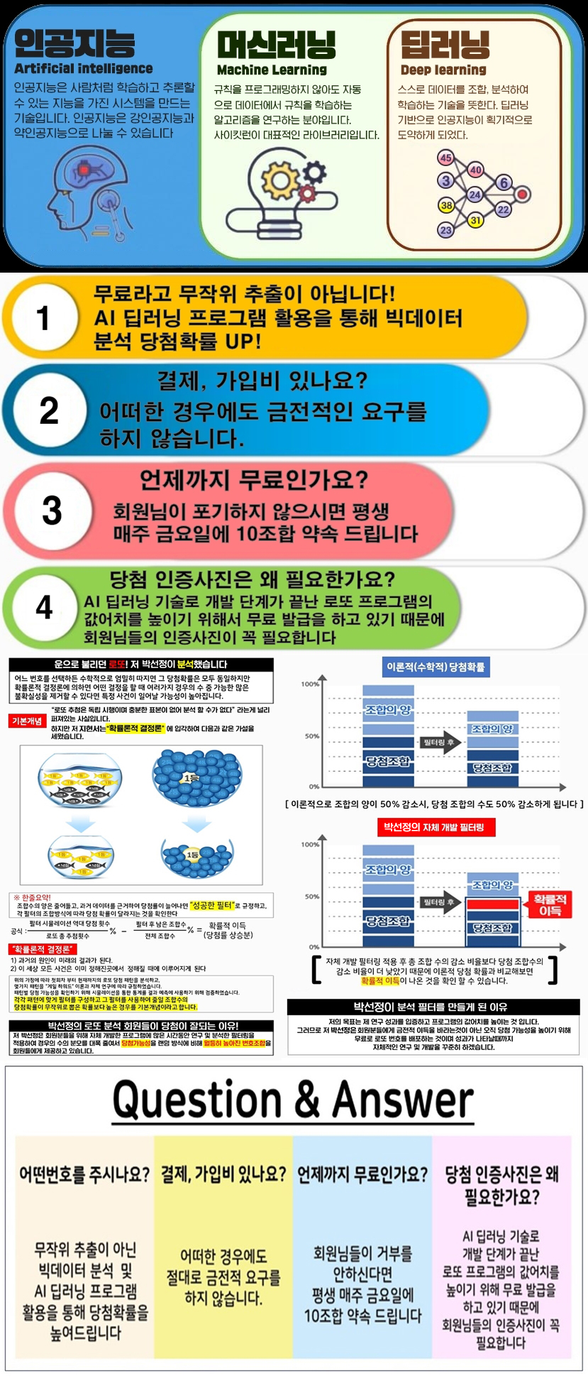 그러나 유료 로또업체의 소비자 기만과 말도 않되는 횡포에 퇴사를 하게되었고 더이상 유료업체로 인해 피해보시는 분들이 없도록 대형업체와 똑같은 방식으로 번호 추출하여 무료로 나눔드리고 있습니다.